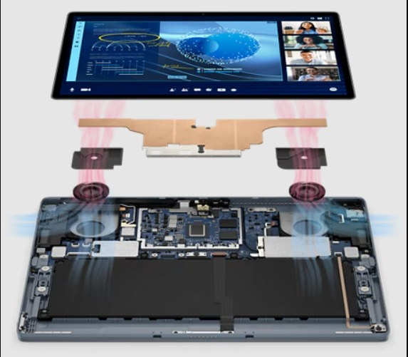 *Modos térmicos inteligentes: La Latitude 7350 desmontable cuenta con modos térmicos inteligentes que garantizan un funcionamiento hasta un 51 % más rápido en modo portátil, un 37 % más silencioso en modo tableta y hasta 5 °C más frío en modo tableta.