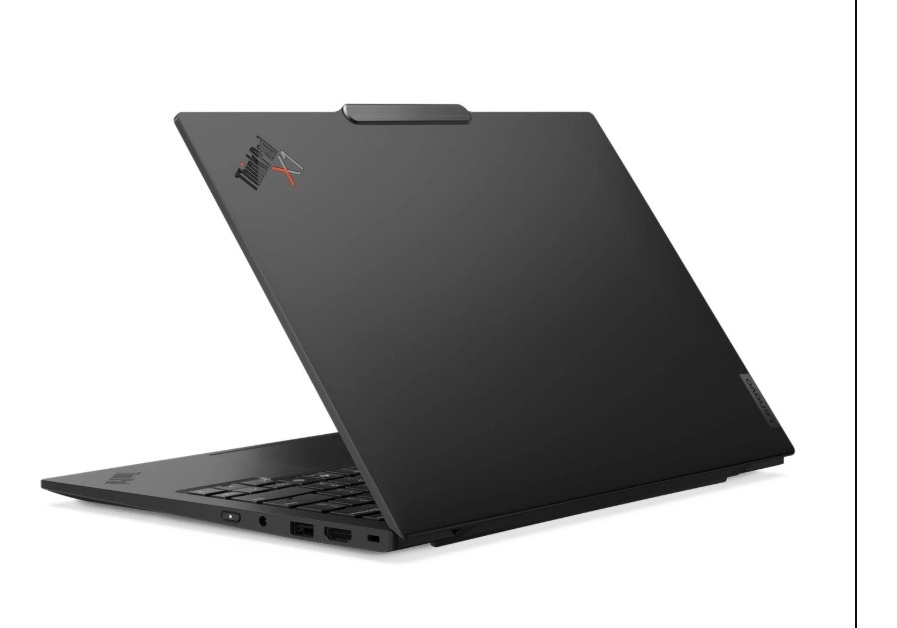 El ThinkPad X1 Carbon Gen 13 Aura Edition pesa poco más de un kilogramo, así que puedes manejarlo con una mano y abrirlo fácilmente con un dedo. ¿Y lo mejor? Este portátil ultrafino incluye muchísimas opciones de conectividad para conectar un monitor, cargar rápidamente otros dispositivos, transferir archivos e incluso conectar unos auriculares si eres de la vieja escuela.